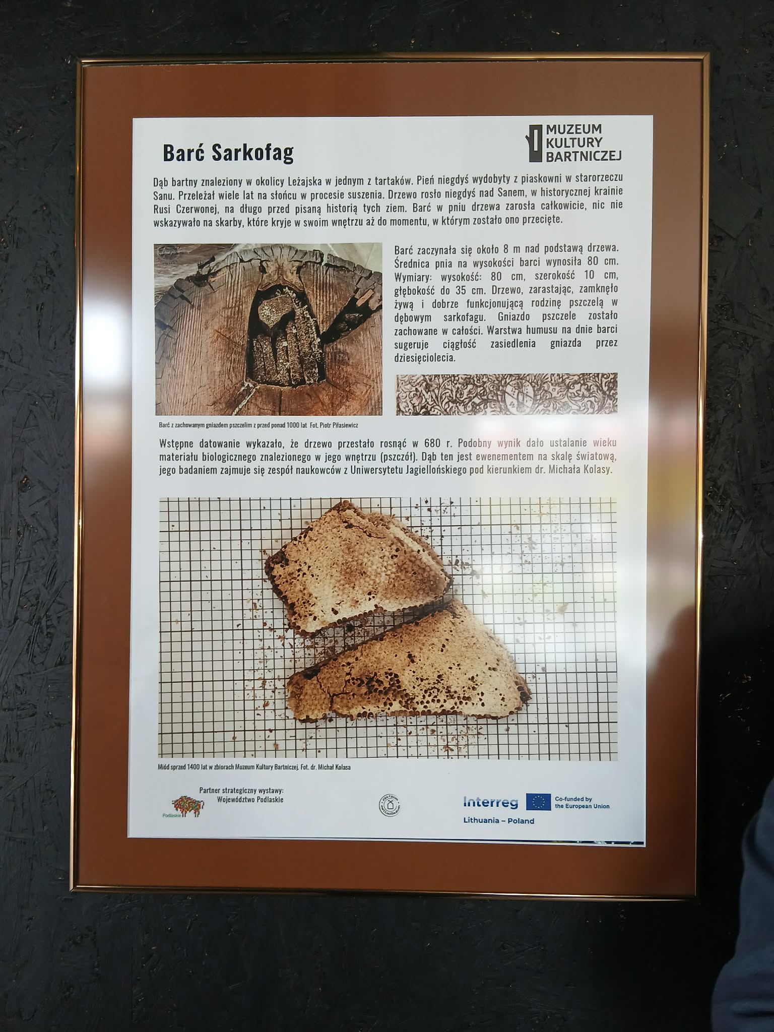 Muzeum Kultury Bartniczej, to miejsce które w nowoczesny sposób opowiada o jednej z najstarszych tradycji regionu. Posiada nowoczesną salę wystawienniczą z interaktywną strefą edukacyjną. W przestrzeni muzealnej znajdują się eksponaty, związane z kulturą bartniczą, pochodzące z terenów Polski, Ukrainy, Litwy i Białorusi. Podczas wydarzenia wszyscy zaproszeni goście oraz uczestnicy zostali oprowadzeni po ekspozycji muzealnej, której największą atrakcją jest „Barć Sarkofag” – dąb bartny datowany na VII w., który nazwę zawdzięcza temu, że w jego wnętrzu zachowało się kompletne gniazdo pszczele. Został znaleziony w okolicy Leżajska w jednym z tartaków, a wydobyto go z piaskowni w starorzeczu Sanu. Jest to najstarsza odnaleziona na świecie barć. Dzięki licznym zbiegom okoliczności i dobrej woli ludzi, którym los barci nie był obojętny, trafiła do Muzeum Kultury Bartniczej w Augustowie.