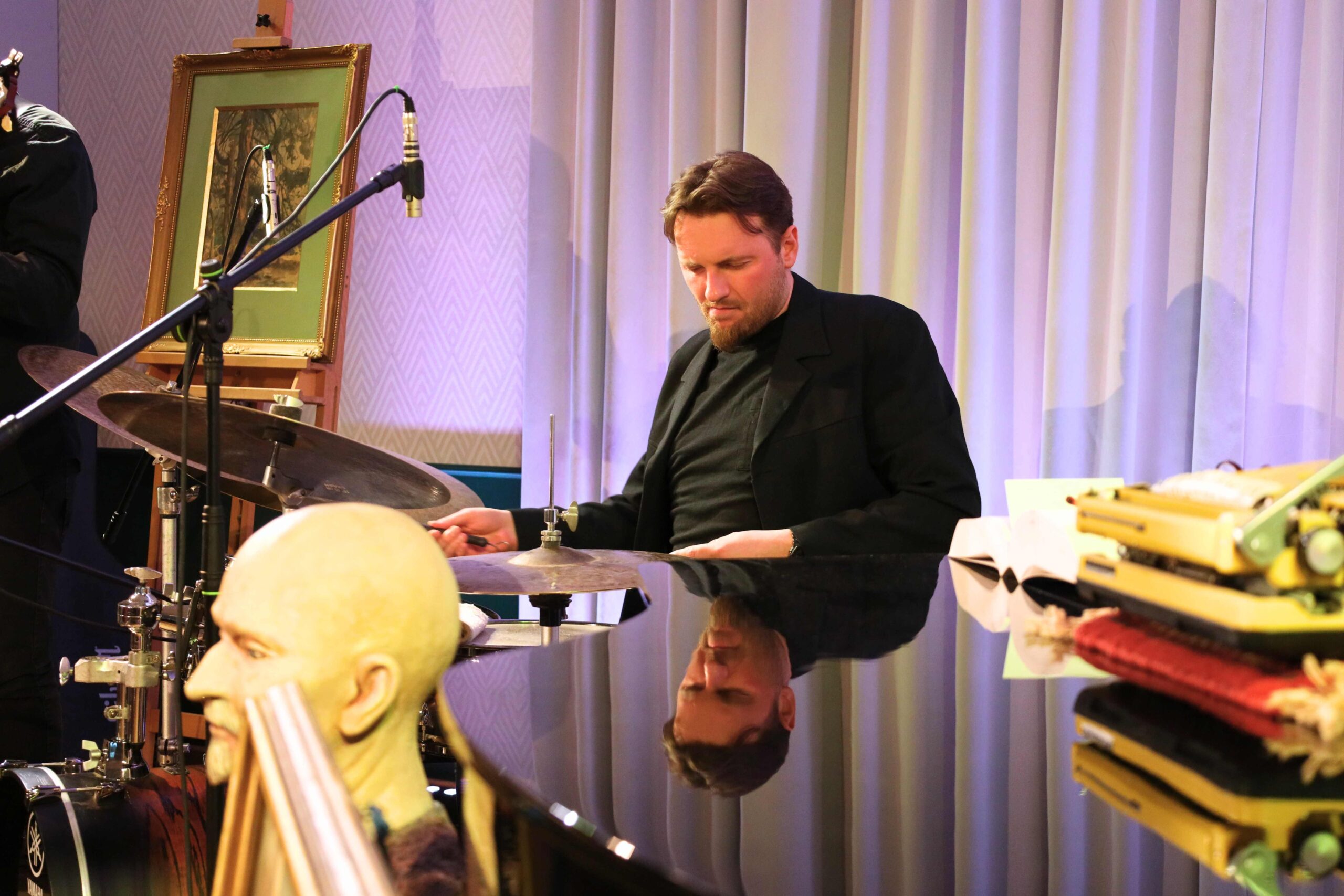 W niezwykłym, pełnym wrażliwości wykonaniu Aresa Chadzinikolau oraz zespołu muzyków: Adam Zagórski (perkusja), Piotr Rogacki (kontrabas), Piotr Grossmann (gitara) oraz Waldemar Knade (altówka), publiczność mogła zanurzyć się w dźwiękowe pejzaże inspirowane naturą tak bliską twórczości Wyczółkowskiego. Kompozycje takie jak „Dęby Rogalińskie”, „Bory Tucholskie I i II”, „Anemony” czy „Prymule – Wiosna” przenosiły słuchaczy w świat organicznych struktur, pulsujących rytmów i subtelnych napięć, gdzie jazz i awangarda spotykały się z malarską intuicją. Energia sceniczna lidera projektu nadawała całości wyrazisty, niemal hipnotyczny charakter, prowadząc odbiorców przez kolejne warstwy artystycznej narracji.