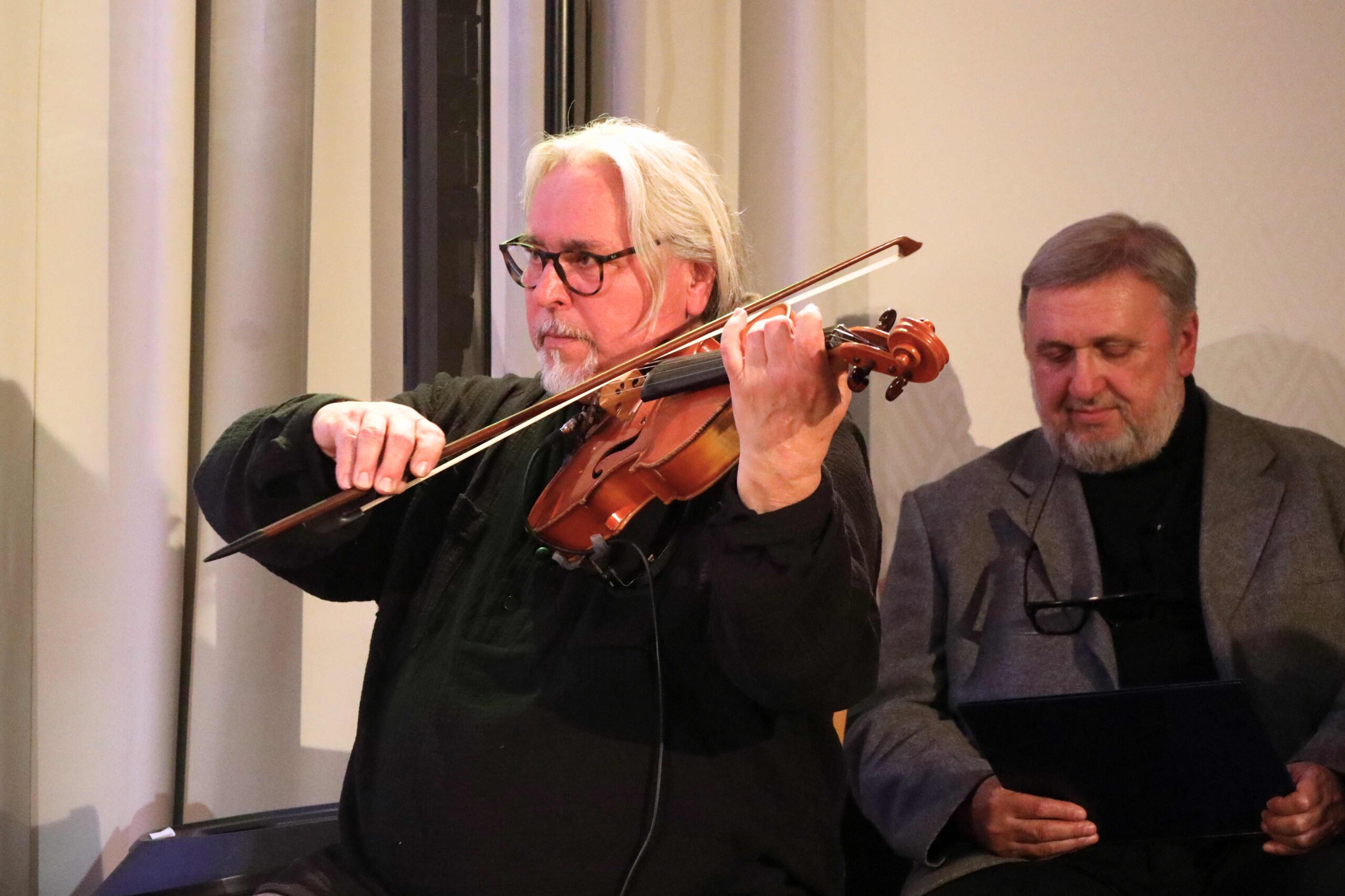 Karl Grenzler oraz Paweł Władysław Płócienniczak zaprezentowali autorskie teksty poetyckie dedykowane mistrzowi Wyczółkowskiemu. Ich recytacje i twórczość budowały pomost między obrazem, dźwiękiem a interpretacją poetycką. W przestrzeni koncertowej wybrzmiewały przedstawienia jodeł oraz astrów autorstwa Leona Wyczółkowskiego, czyli drzew i kwiatów – dwóch porządków natury, które Mistrz tak chętnie podejmował w swojej twórczości, odnajdując w nich piękno i ulotność chwili.